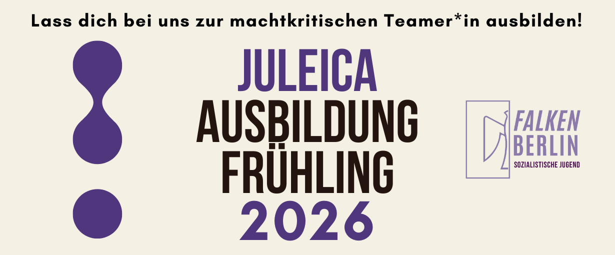- Die Juleica ist bei uns Vorraussetzung für die pädagogische Begleitung von Falken Veranstaltungen und Fahrten